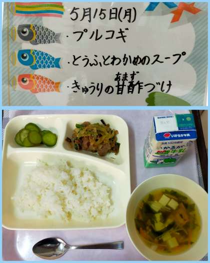 「とうふとわかめのスープ」と「きゅうりの甘酢づけ」も、こどもたちに好評で『また作ってほしいわ!!』と声が聞こえてきました。