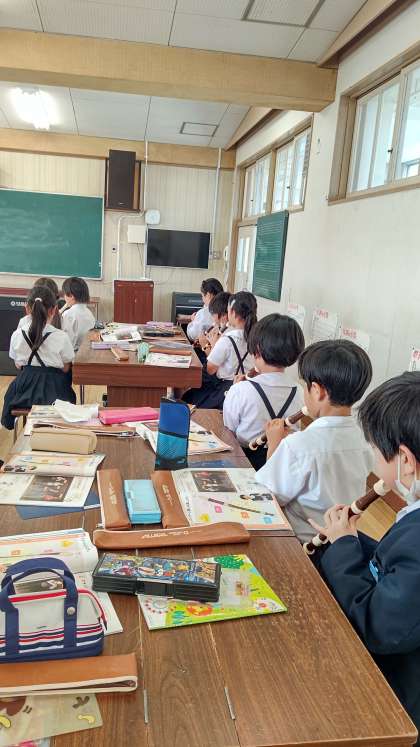 音楽で初めてのリコーダーの学習をしました。朝からわくわくドキドキしていた3年生です。音楽の先生がいろいろなリコーダーで春の小川を演奏をして、その度に歓声と拍手が起こりました。今日は、リコーダーの持ち方、置き方、手入れの仕方を学んで、そのあと、シの音にチャレンジ。練習をがんばって、いつかピタゴラスイッチが演奏できるようになるかな。