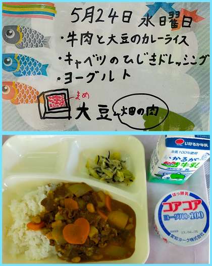 今日のカレーライスは大豆が入り、大豆の甘みや旨みを味わうことができました。