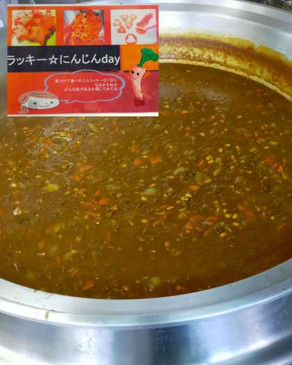こども達が楽しみにしている『ラッキーにんじん』も給食調理員さんに、たくさん入れてもらいました。