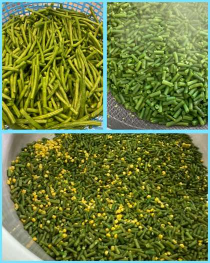 今日の給食では、生のさんどまめとコーンを使用し、塩、こしょうで味つけしたシンプルな味のソテーをいただきました。