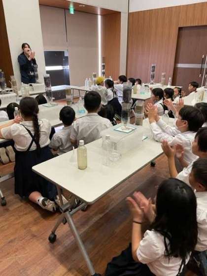 また、実験では実際に濾過をして、水をきれいにする体験もしました。