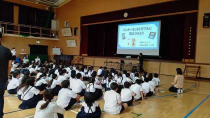 3、4年生は講堂で、消費生活相談員の先生から、インターネットとのつきあい方のお話をしていただきました。どんなトラブルに巻き込まれる可能性があるのか分かって、とてもためになりました。6年生は、家庭科の授業を一生懸命受けていました。ナップザックの完成が楽しみです。