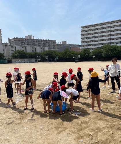 生活科で水遊びとシャボン玉をしました。みんなとってもいい笑顔で、たっぷり楽しみました。