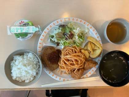 ハンバーグと唐揚げのプレートです。