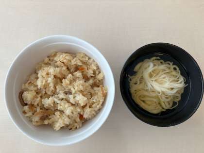 最終日の昼食は、定番の五目ごはんとにゅうめんです。