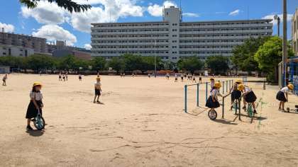 始業式でした。久しぶりの休み時間、元気に外に飛び出して遊ぶ子どもたちです。