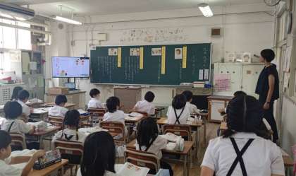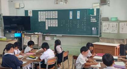 1年生は国語「ことばあそびうたをつくろう」、2年生は道徳「いいところみぃつけた」の授業を参観してもらいました。みんなたくさんの人が見ているなかでも、がんばって楽しそうに学習していました。
