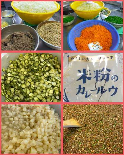 小麦アレルギーの児童も食べられるように、米粉のカレールウの素を
