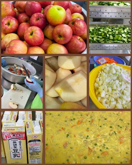 一年生は、りんごの皮を剥いて提供しましたが、他の学年は、りんごを一個ずつ丁寧に三回洗いし、栄養価が高いことから、皮つきで提供しています。