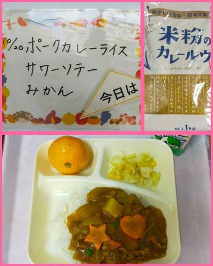 本日の給食は ・ポークカレーライス【米粉】