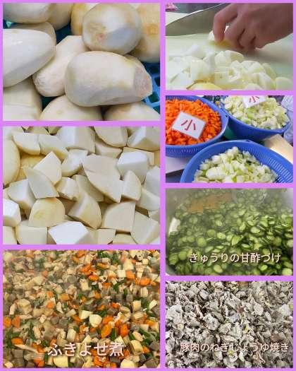 本日、東淡路小学校の給食には愛媛県産の大きくて立派なさといもが使われていました。