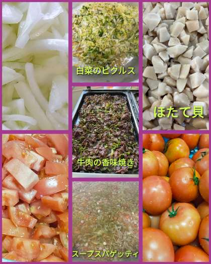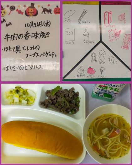 給食☆ほたて貝とトマトのスープスパゲッティ