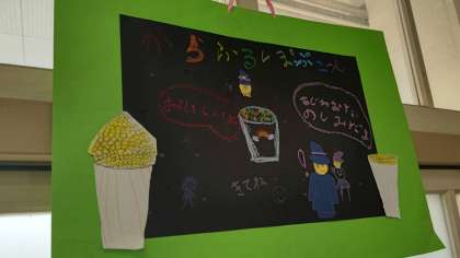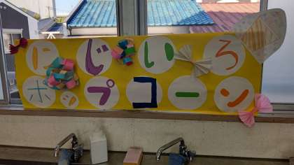 なかよしタイムでポップコーン屋さんの開店です。にじいろポップコーンとカラフルポップコーン。フレーバーは、塩バター、塩、チョコ、キャラメルの4種類です!