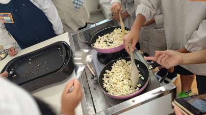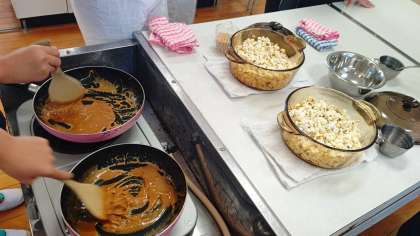 ポンポンふくれたポップコーンに味付けです。火も上手に使いました。