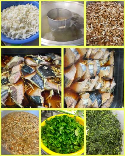 本日は、せん切りのしょうがと調味料を加えて焼き物機で蒸し焼きにしています。