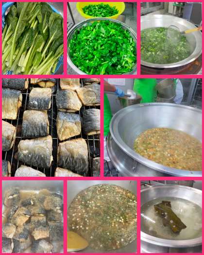 ゆず果汁を合わせたたれを、焼き物機で焼いたさばにかけています。