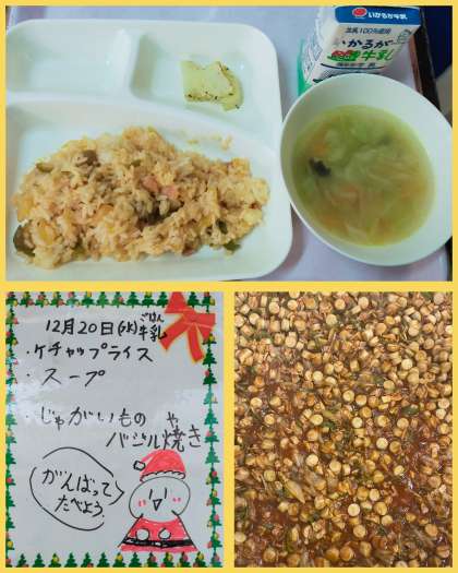 児童に人気のケチャップ味で、ごはんに味が付くと児童も良く食べています。