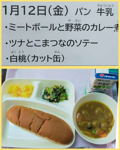 本日の給食は   ・ミートボールと野菜のカレー煮