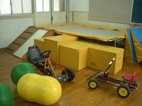 「なかよし学級2」で昼休みにのトランポリンや遊具で遊んだりしています。