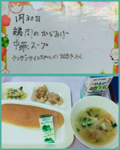 大人気な『鶏肉のからあげ』ですが、『中華スープ』も楽しみにしている児童が多くいました。
