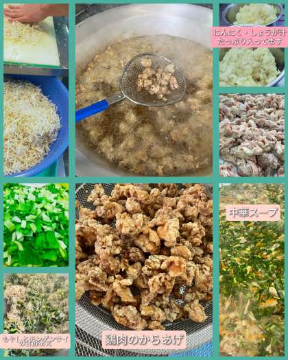 「鶏肉のからあげ」は、鶏肉にしょうが・にんにく・塩こしょうで下味をつけ、片栗粉をまぶしており、風味よく揚がりました!
