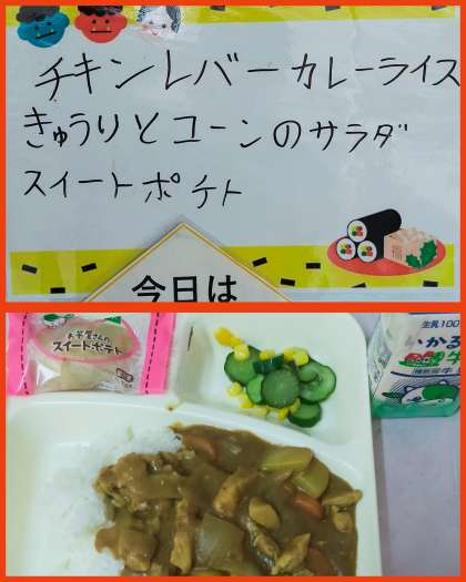 本日の給食は ・チキンレバーカレーライス