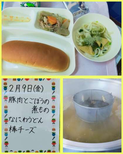 出汁が香り、温かい「なにわうどん」は児童にいつも大人気です!