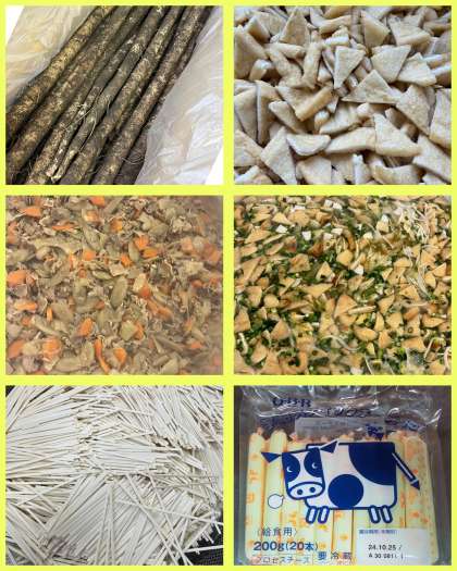 大阪市の給食では、「きつねうどん」をイメージして、三角に切って甘辛く煮たうすあげと、かまぼこ、はくさい、青ネギを取り合わせ、とろろこんぶを添えたうどんを「なにわうどん」と呼んでいます。