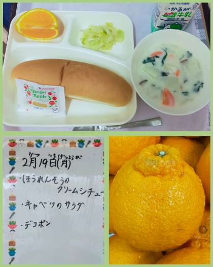 本日の給食は ・ほうれんそうのクリームシチュー