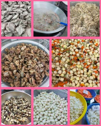 「煮もの」は、真っ白で、おもちのようなまる天がたくさん入り、野菜と一緒に煮込まれました。