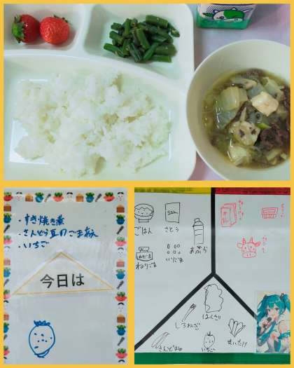 児童に大好評な『すき焼き煮』と『いちご』に注目が集まりました。