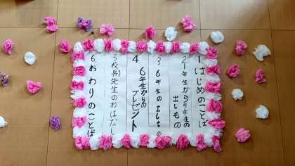 代表委員の児童たちが企画、準備した卒業を祝う会が行われました。