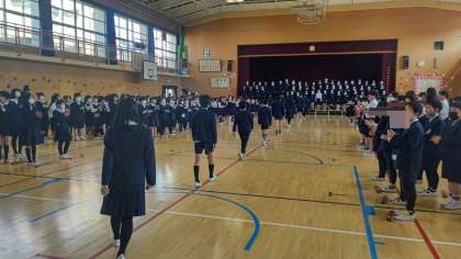 講堂で集まっての祝う会は、5年ぶりです。