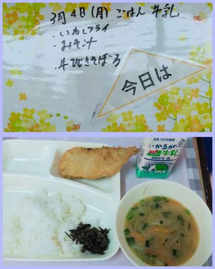 本日の給食は ・いわしフライ