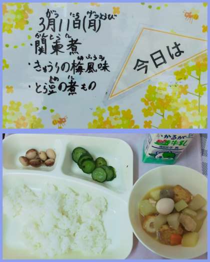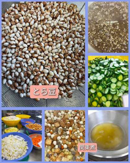 給食室の大きな釜で甘くふっくらと炊かれた豆はおいしかったです。