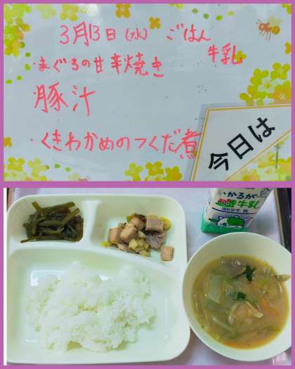 食感の良いくきわかめを、だしで煮て、砂糖・みりん・こいくちしょうゆで味つけして煮詰めています。ごはんに良く合う一品でした!