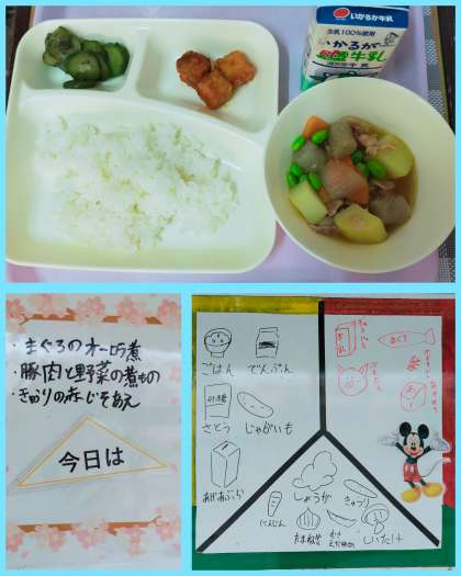 一年生は初めて見た『オーロラ煮』に鶏肉の唐揚げと勘違いしている児童もいました。