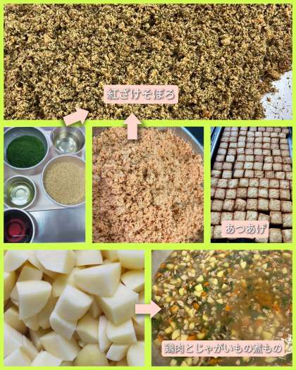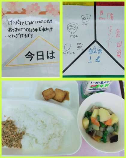 本日の給食は・鶏肉とじゃがいもの煮もの