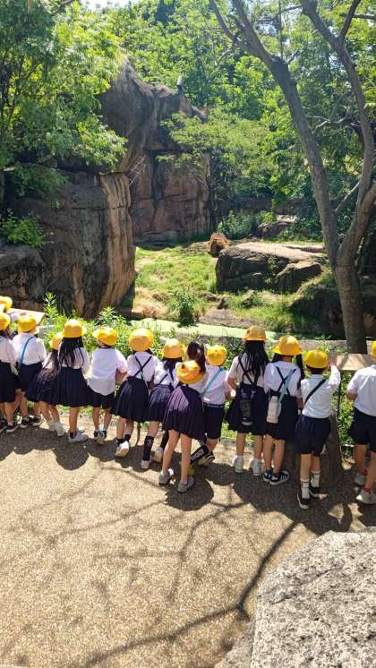 そっぽを向いているライオンに「おーい。」と呼びかけたり、葉っぱを食べているキリンに「おいしいですかー?」と聞いたり、元気いっぱいの2年生でした。お弁当のご用意、ありがとうございました。