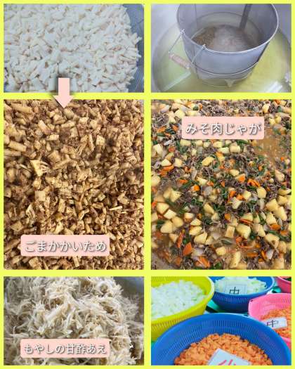 給食では、和風料理や中華料理の炒め物、煮物、汁ものに食材として、たけのこ(水煮)が使用されています。