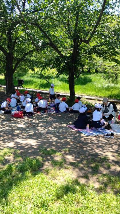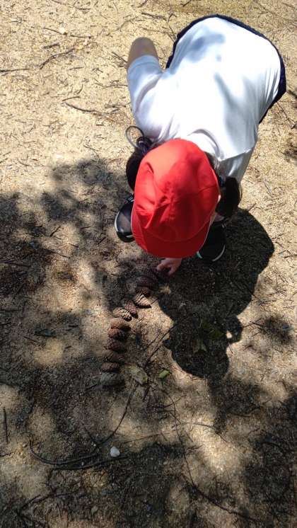 遊具がないエリアでは、松ぼっくりパーティーをしたり、お宝探しと張り切って石を土のなかから掘ったり、冒険ごっこをしたり。いろんな遊び方を思い付く1年生です。お弁当もおいしく楽しくいただきました。ご用意ありがとうございます。