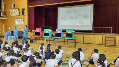 パッカー車にごみを入れたり、実際にごみを分別してみたり、いろいろな体験をしながら、学習を深めました。