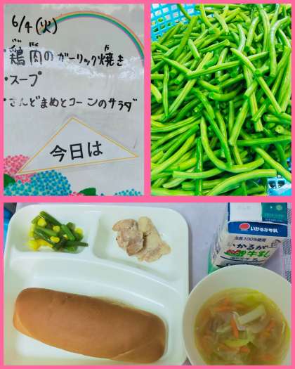 おいしい季節に、『さんどまめとコーンのサラダ』でいただきました。