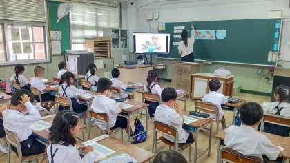 2年生は漢字の学習です。図形のなかに隠れている漢字を一生懸命探していました。お友達の発見に「すごいー。」と感心する姿もありました。