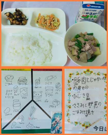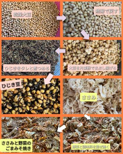 給食☆ひじき豆&ささみと野菜のごまみそ焼き
