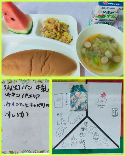 給食室前では、『朝ごはんもスイカだった』と教えてくれる児童が何人もいました。