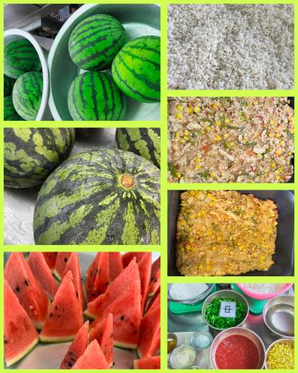丸いすいかを、1/64にカットにする技は、調理員さんの腕にかかっています。