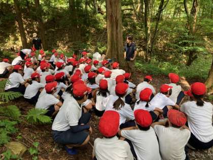 まずは説明を聞きます。魚つかみはこの写真の左の奥のプールで、沢のぼりは右手の下の方からスタートして行います。