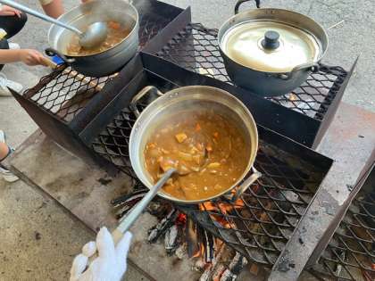 薪の使う量…使いすぎるともったいないですし、少ないと時間がかかる。その辺を塩梅して、なんとか具材が煮えました。